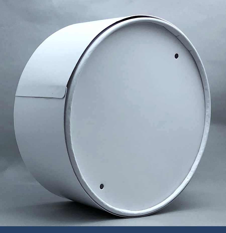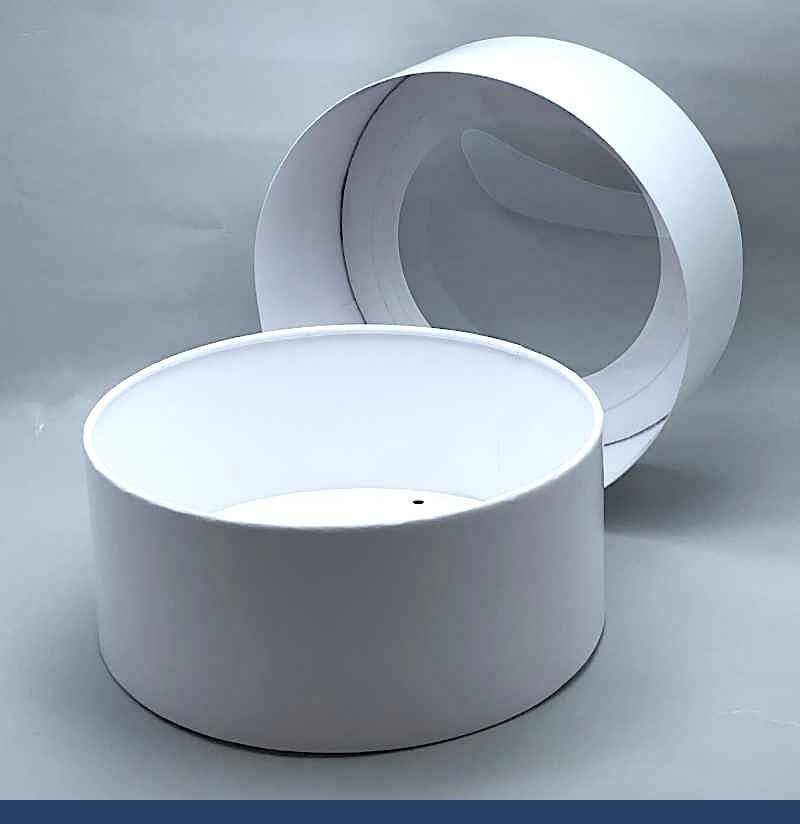 Имеет цилиндрическую форму (шайба). Белая коробка с окном. Конструкция коробки: крышка+дно, поставляется в собранном виде. Особенность коробки в том, что крышка по высоте равна высоте донышка, это делает коробку особенно прочной, вы можете быть уверенны, ваш заказ коробок доедет к вам в целости.