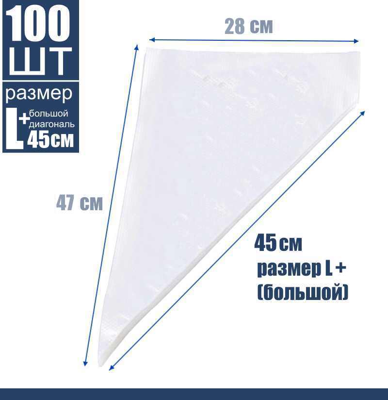 Кондитерские мешки 45 см большой размер (L+), одноразовые кулинарные мешки, упаковка 100 или 300 шт - легко купить в интернет магазине. Бережно упакуем. Быстро доставим ваш заказ. Скидка на первый заказ и постоянным покупателям от 5%. Ищите промокод для скидки на нашем сайте.